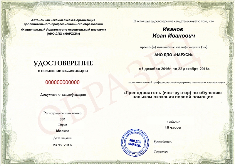 Преподаватель (инструктор) по обучению навыкам оказания первой помощи (40ч)