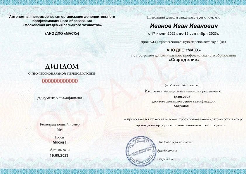 Официальный диплом о профпереподготовкеСведения о документе вносятся в ФИС ФРДО.