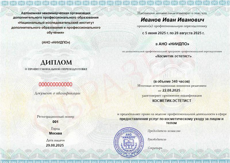 Да, выданный АНО «НИИДПО» диплом предоставляет вам право на ведение профессиональной деятельности в соответствии с квалификацией.