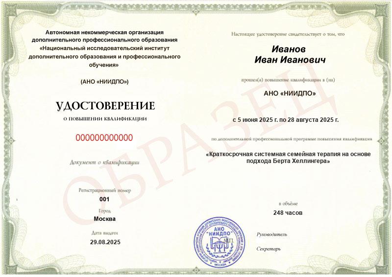 Освойте эффективный метод краткосрочной системной терапии на основе подхода Берта Хеллингера. Помогайте прорабатывать семейные и родовые проблемы, глубинный травматический опыт, структуру личности и взаимосвязи с прошлым, настоящим и будущим
