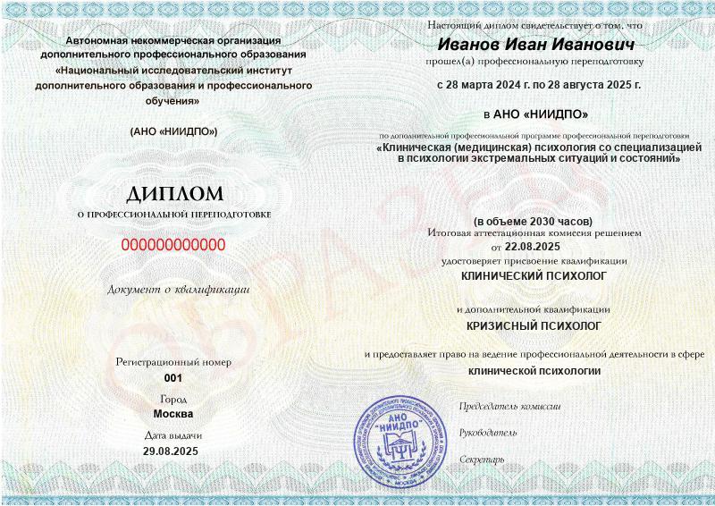 - 2 квалификации: Клинический психолог + Кризисный психолог
