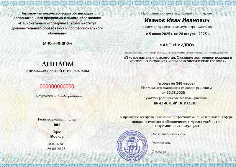 - Квалификация: Кризисный психолог