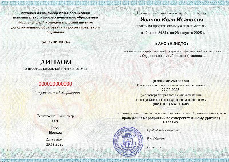 Да, выданный АНО «НИИДПО» диплом предоставляет вам право на ведение профессиональной деятельности в соответствии с квалификацией.