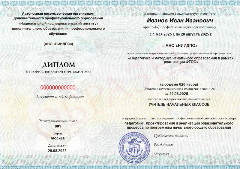Студент, желающий поступить в АНО «НИИДПО», должен предоставить справку из образовательной организации. Независимо от срока окончания обучения по программе дополнительного образования, диплом о профпереподготовке выдаётся только после предъявления документа о получении среднего профессионального или высшего образования.