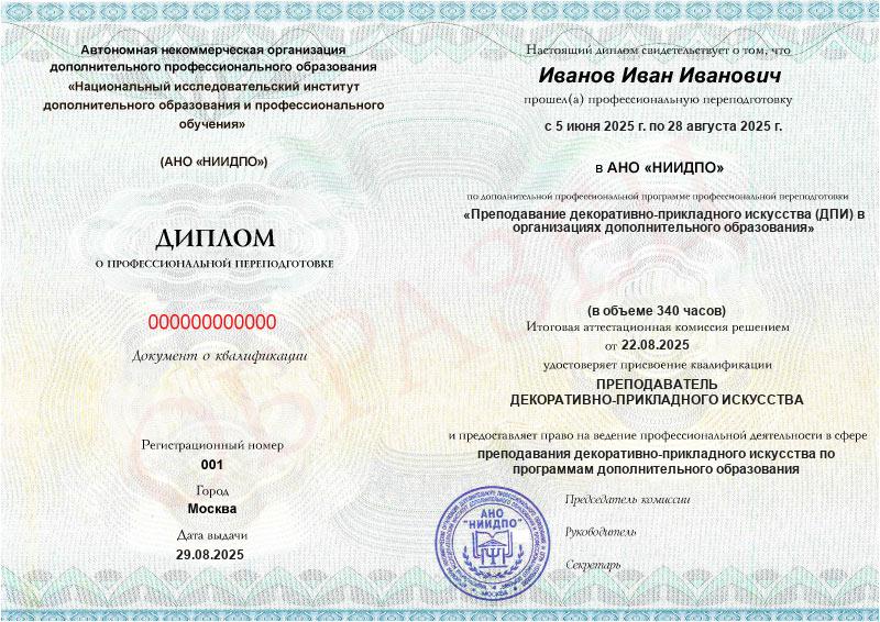 Обзор программы профессиональной переподготовки «Преподавание декоративно-прикладного искусства (ДПИ) в организациях дополнительного образования» с присвоением квалификации «Преподаватель декоративно-прикладного искусства»