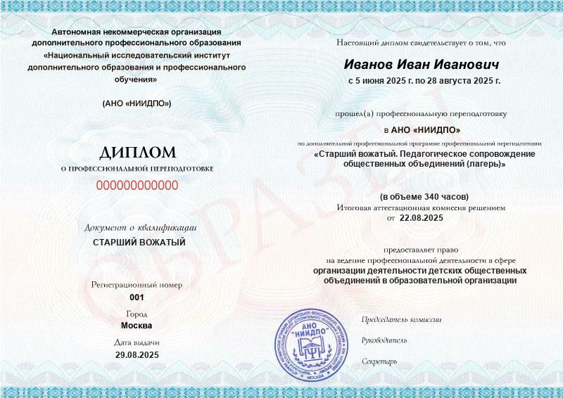 Курс обучения Старший вожатый. Педагогическое сопровождение общественных объединений (лагерь) (340ч)