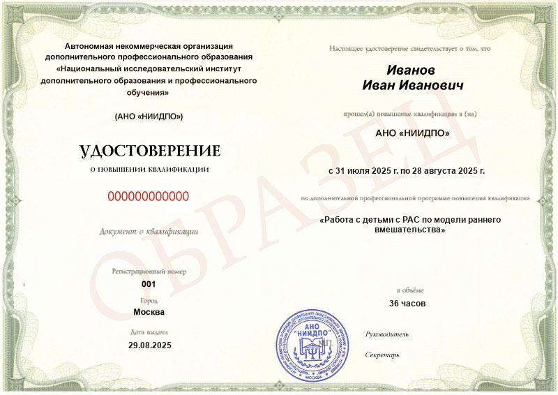 Да, документы оформляются на бланках с защитой от подделок, заполняются на русском языке, в них ставится печать АНО «НИИДПО».