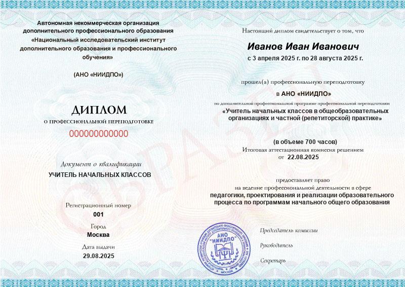 Учитель начальных классов в общеобразовательных организациях и частной (репетиторской) практике (700ч)