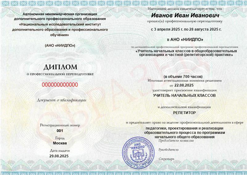 Обзор программы профессиональной переподготовки «Учитель начальных классов в общеобразовательных организациях и частной (репетиторской) практике» с присвоением квалификации «Учитель начальных классов» с дополнительной квалификацией «Репетитор»