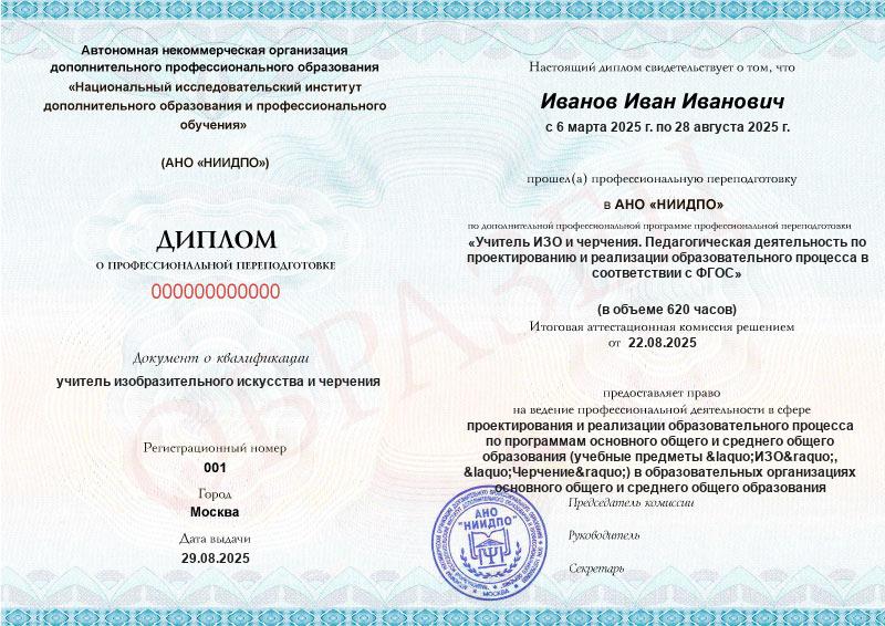 Диплом о профессиональной переподготовке московского института