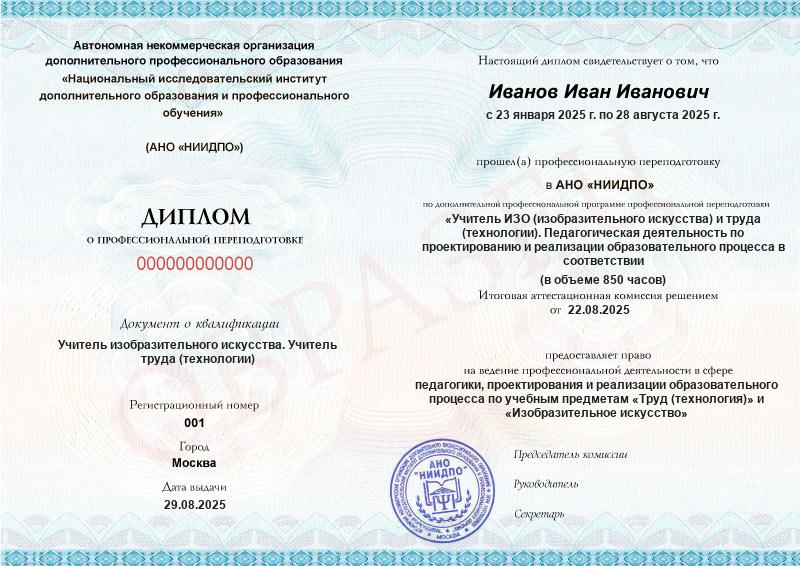 Учитель ИЗО (изобразительного искусства) и труда (технологии). Педагогическая деятельность по проектированию и реализации образовательного процесса в соответствии с ФГОС (850ч)